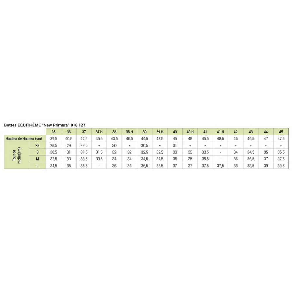 Pour convenir à un maximum de cavaliers, les Bottes EQUITHÈME New Primera se déclinent en demi-mesure offrant un large choix de combinaison hauteur de tige/largeur de mollet par pointure pour un ajustement personnalisé.
