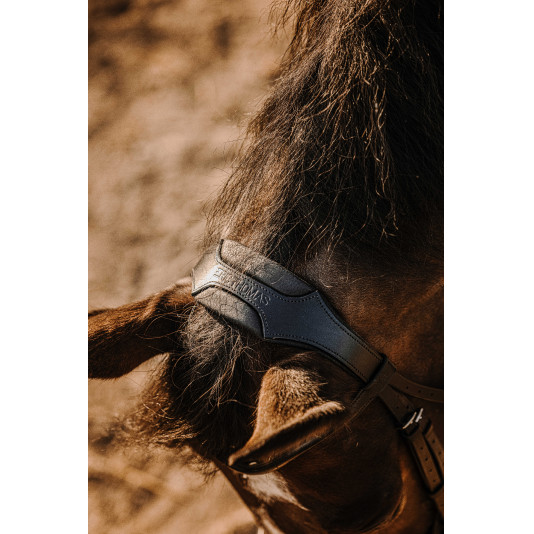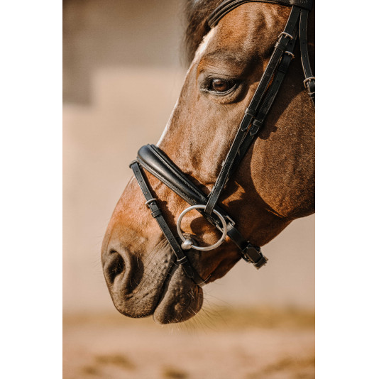 Le Bridon Éric Thomas Bat est équipé d’une muserolle suédoise, large et matelassée pour plus de confort associée à un nose-band.