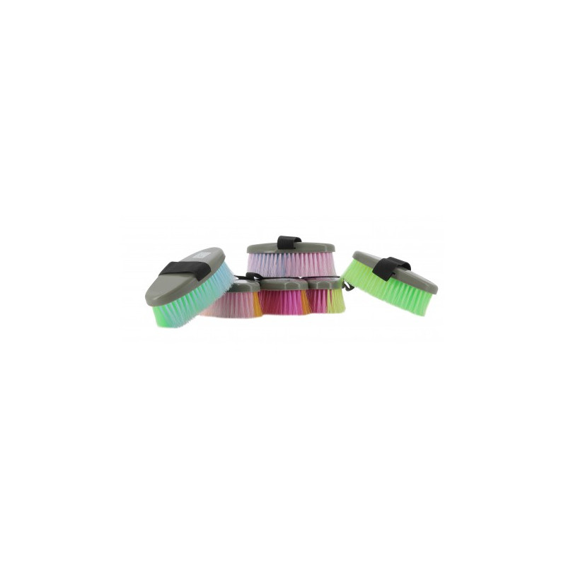 Avec ses poils aux couleurs acidulées, la Brosse douce Hippo-Tonic multicolore apporte une touche de fun à votre matériel de pansage.