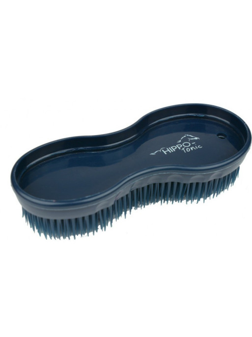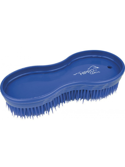 Pratique et très fonctionnelle, la brosse multifonction Hippotonic peut servir au cavalier pour le pansage du cheval en tant que bouchon, brosse à sabot et étrille pour appliquer le shampoing.