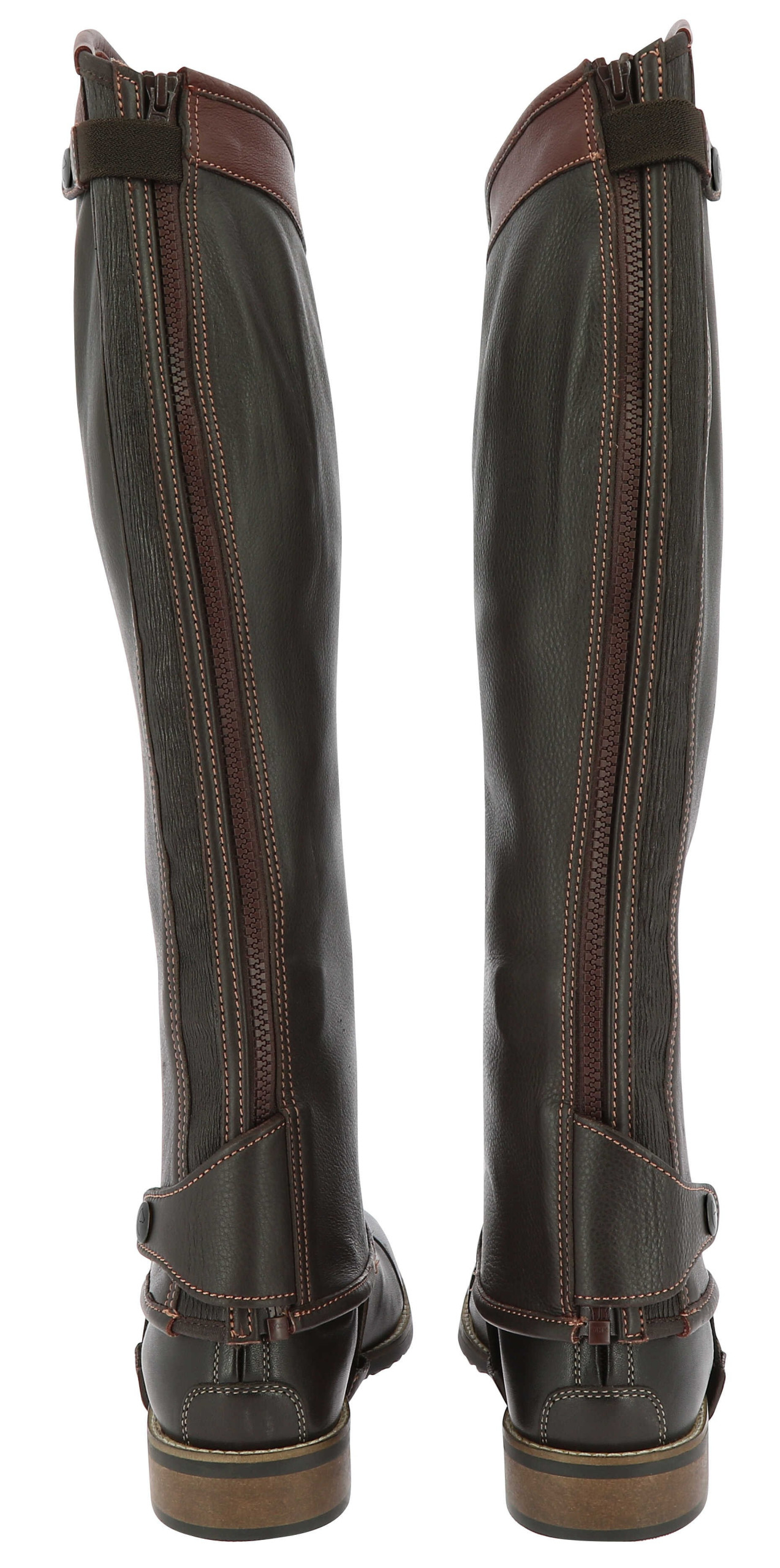 Les Mini-chaps EQUITHÈME Elite sont souples et finement grainées, avec renfort décoratif en cuir lisse en haut de tige.