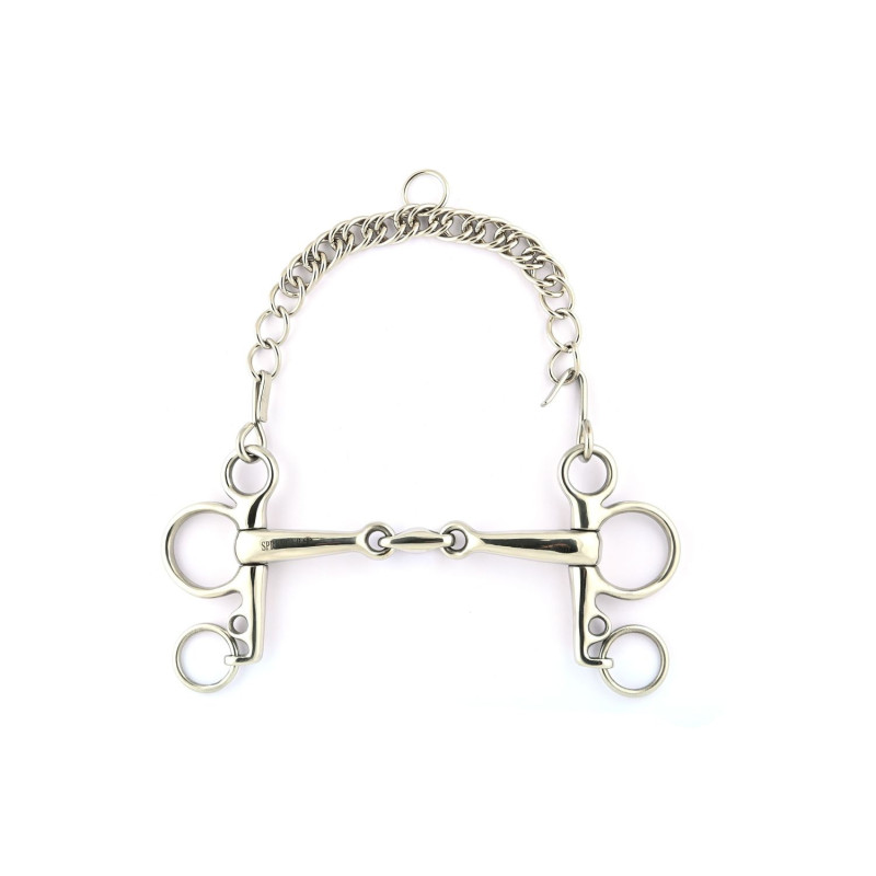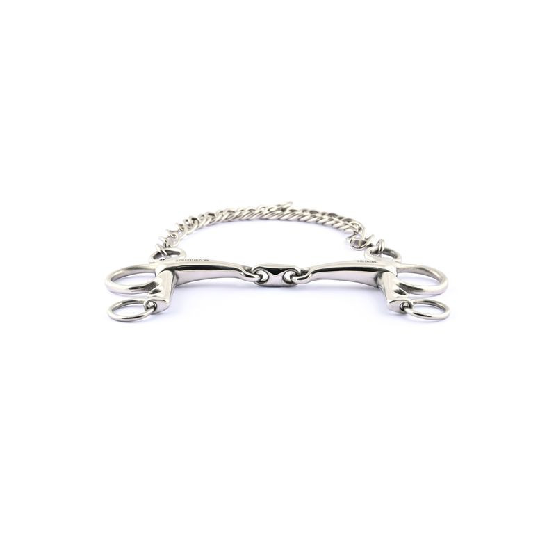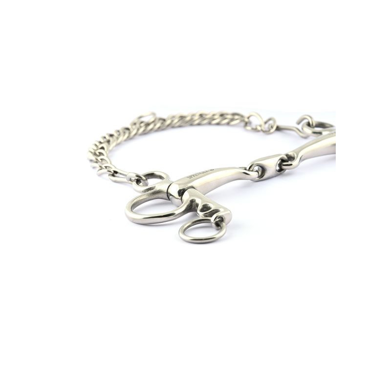 C’est une embouchure souvent utilisée avec les courroies de pelham, pour des niveaux d’entraînement plus élevés il est recommandé d’utiliser 2 paires de rênes.