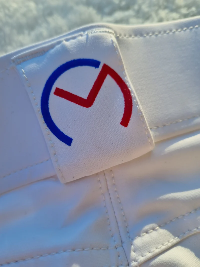Retrouvez le logo en grip silicone au niveau des genoux pour faciliter le maintien de la jambe.