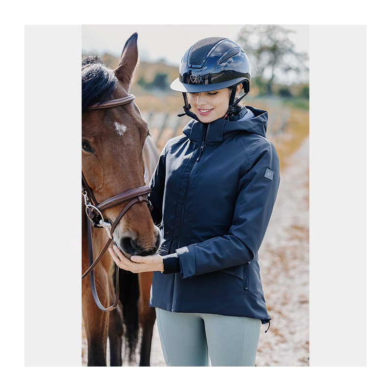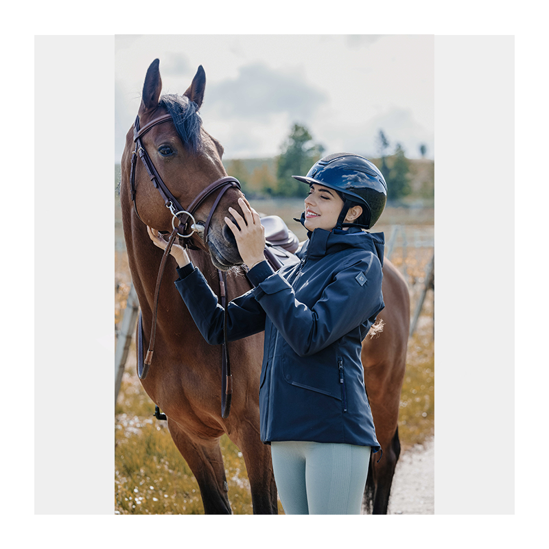 Cintrée, chaude et imperméable, la Parka EQUITHÈME Maguy offre un grand confort à cheval comme à pied sans compromis sur la féminité.