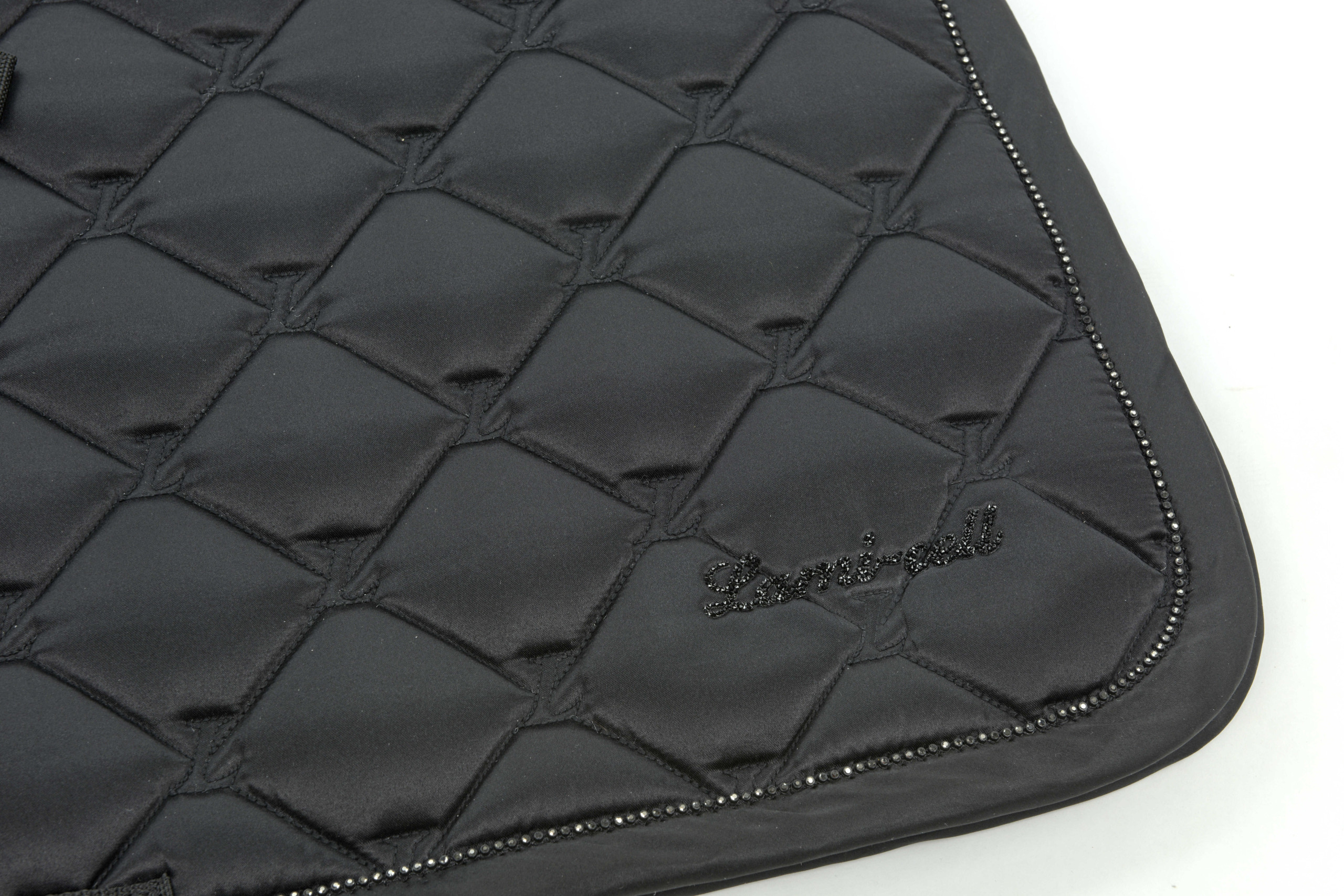Le tapis de selle Lami-Cell Charming allie sophistication et modernité grâce à son tissu satiné lisse, sublimé par une corde cristal pour une touche d’élégance incomparable.