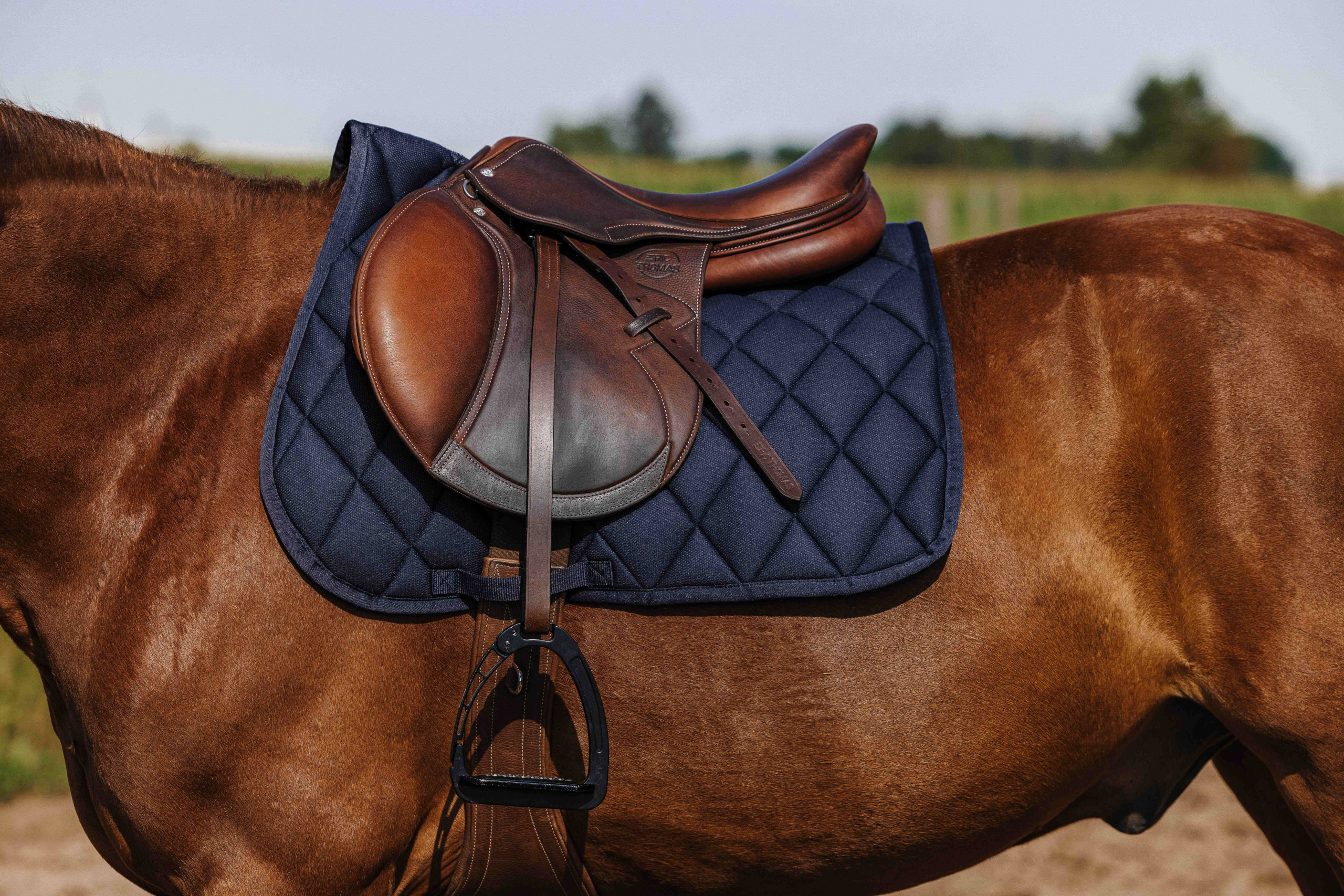 Le Tapis de selle Riding World School est doté d’un matelassage en losanges qui permet une répartition homogène de la pression, tout en offrant un style épuré.